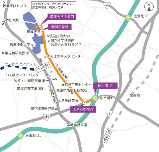 →筑波大学中央入り口左折〈本部棟前〉(約8km)