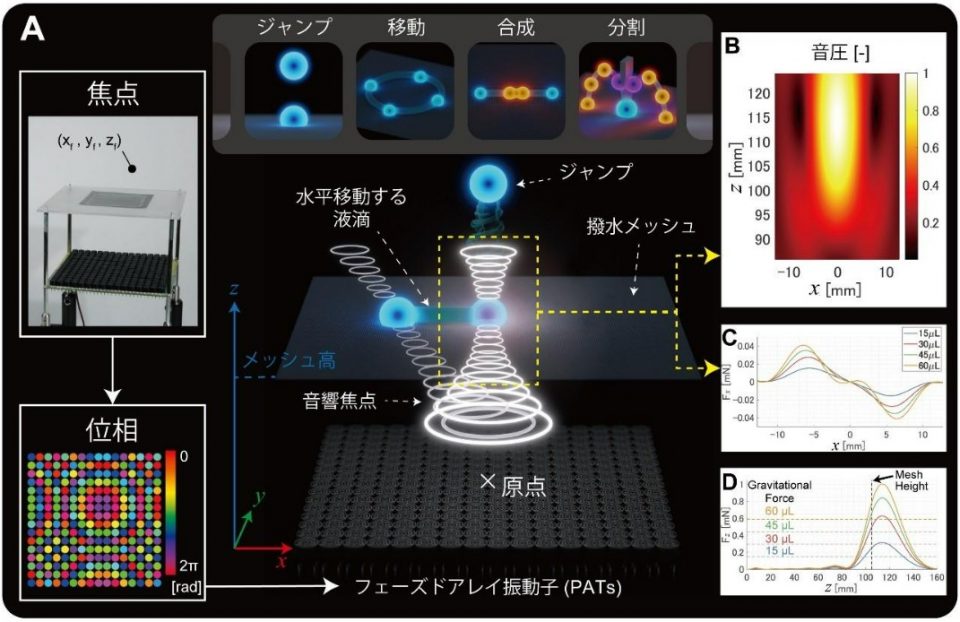 Y.Koroyasu, et al., Microfluidic platform using focused ultrasound passing through hydrophobic meshes with jump availability,