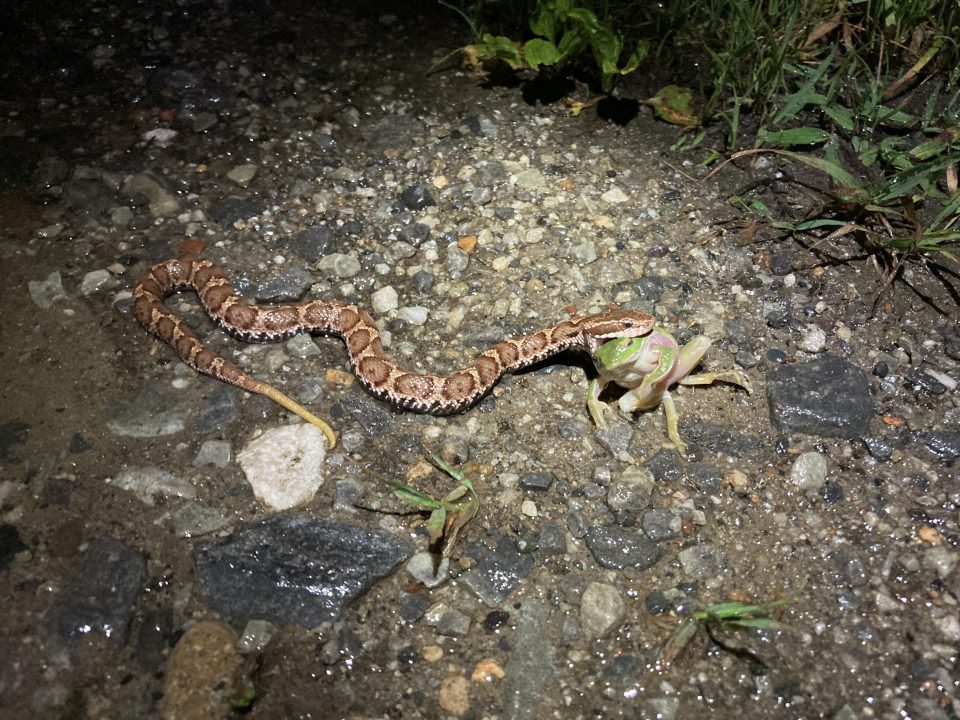 写真2:シュレーゲルアマガエルを捕食するニホンマムシ(撮影:澤田聖人)